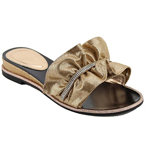 BESTON FQ94 Womens Rhinestone Stud Slide Flat Sandals